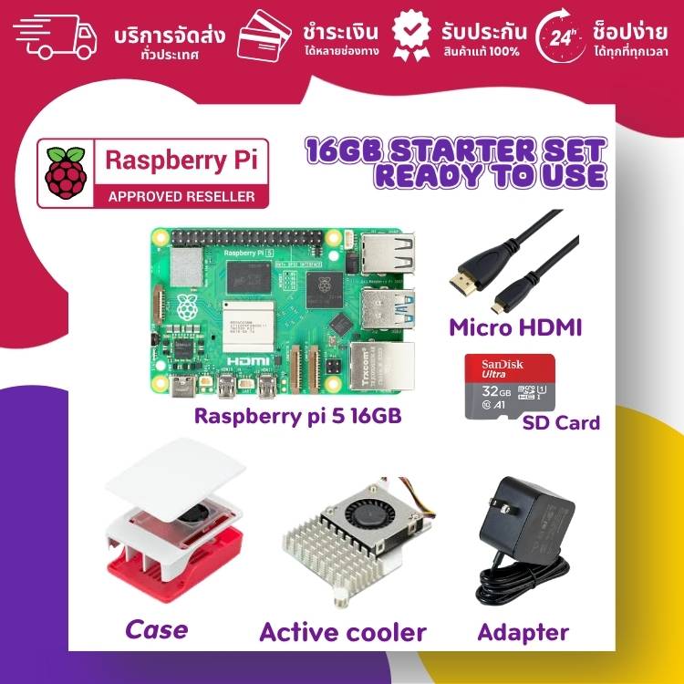 Raspberry Pi 5 Set เซ็ต Raspberry Pi 5 ครบชุด เหมาะสำหรับผู้เริ่มต้นและนักพัฒนา ที่ต้องการบอร์ดพร้อมใช้งานทันที ประกอบด้วยอุปกรณ์เสริมทั้งหมดที่จำเป็นต่อการใช้งาน บอร์ด Raspberry Pi 5 Raspberry Pi 5 Case... อ่านเพิ่มเติม
