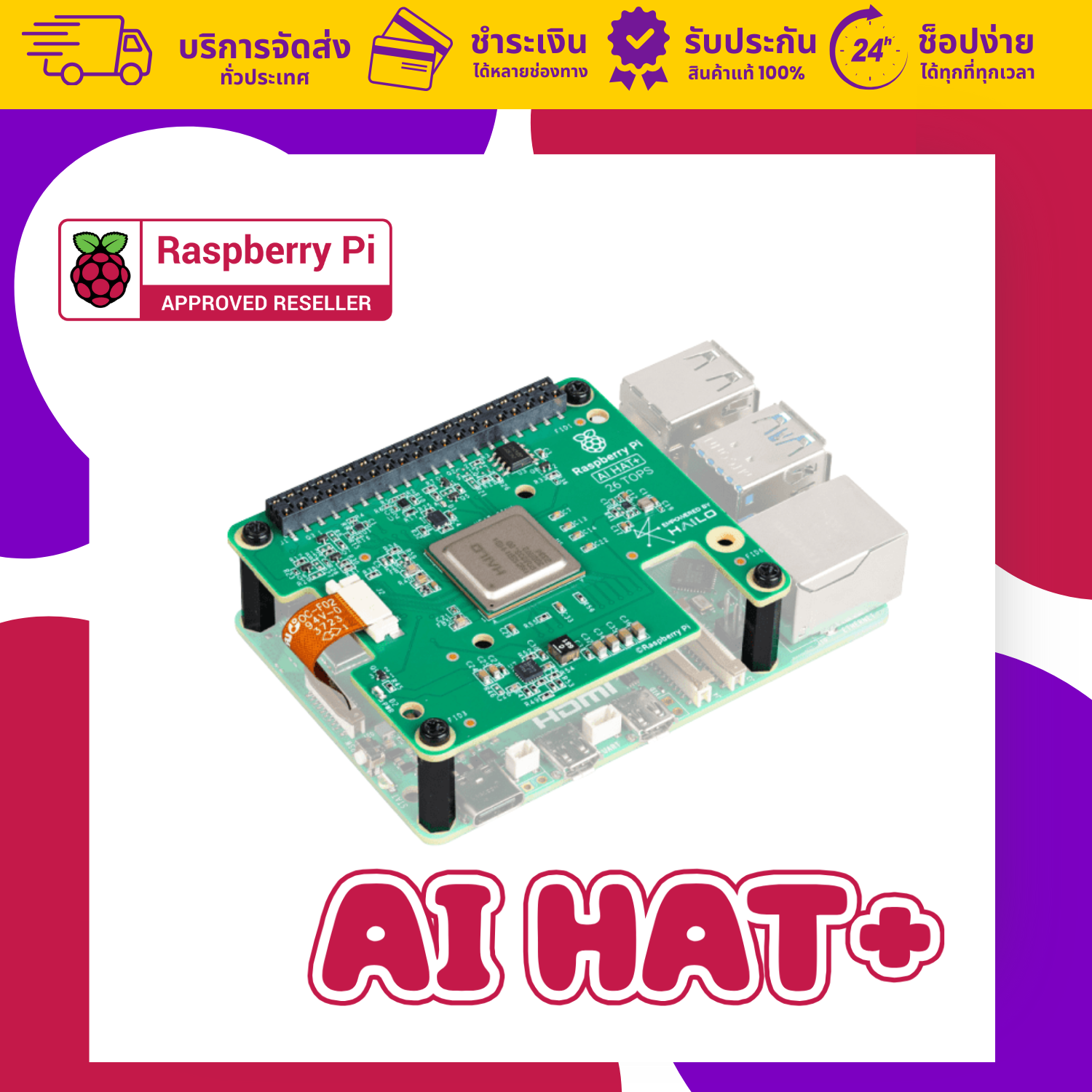 Raspberry Pi AI HAT+ คือบอร์ดเสริม (Add-on board) ที่มาพร้อมกับตัวเร่งความเร็ว AI จาก Hailo ออกแบบมาสำหรับ Raspberry Pi 5 โดยเฉพาะ ช่วยให้คุณสามารถผสานการทำงานของ AI ประสิทธิภาพสูงเข้ากับโปรเจกต์ของคุณได้อย่างง่ายดาย ในราคาที่จับต้องได้ และประหยัดพลังงาน